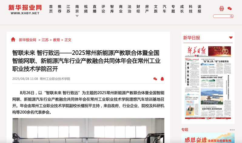 新华报业网:2025常州新能源产教联合体暨全国智能网联、新能源汽车行业产教融合共同体年会在常州工业职业技术学院召开