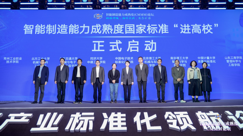11月5日,智能制造能力成熟度(以下简称“CMMM”)论坛在上海盛大举办,国内外相关领域知名院士、行业领袖、企业精英,围绕智能制造能力成熟度的普及应用,以“标准升级、海外实践、生态扩容”为主题,聚焦智能制造最新发展趋势,分享真知灼见,加强资源对接,助推成果落地。其中“智能制造能力成熟度国家标准进高校”项目启动仪式备受瞩目,我校成功入选该项目首批十家合作高校,副校长姚庆文受邀登台,与其他高校代表共同启动项目。同日,数研院院长卢剑伟教授参加了“CMMM咨询服务机构闭门会”,这标志着我校在智能制造标准化人才培养与产业服务领域开启了崭新篇章,也为常州新能源产教联合体深化产教协同、链接产业资源搭建了更高层次的平台。