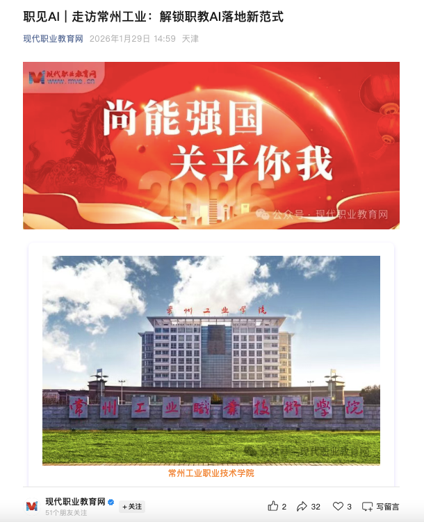 现代职业教育网:职见AI | 走访常州工业:解锁职教AI落地新范式